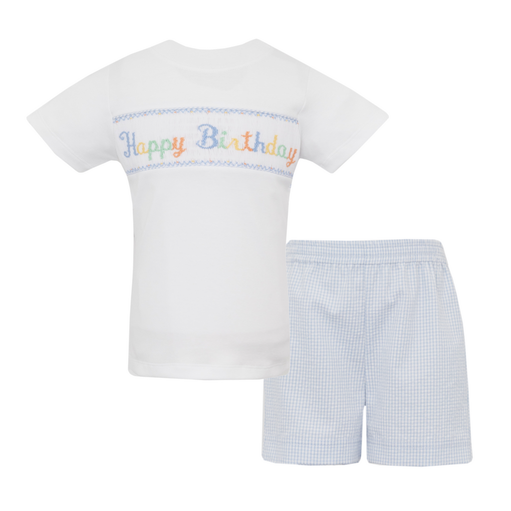 Hand Smocked Plumetti Dress w/ Pleated Collar