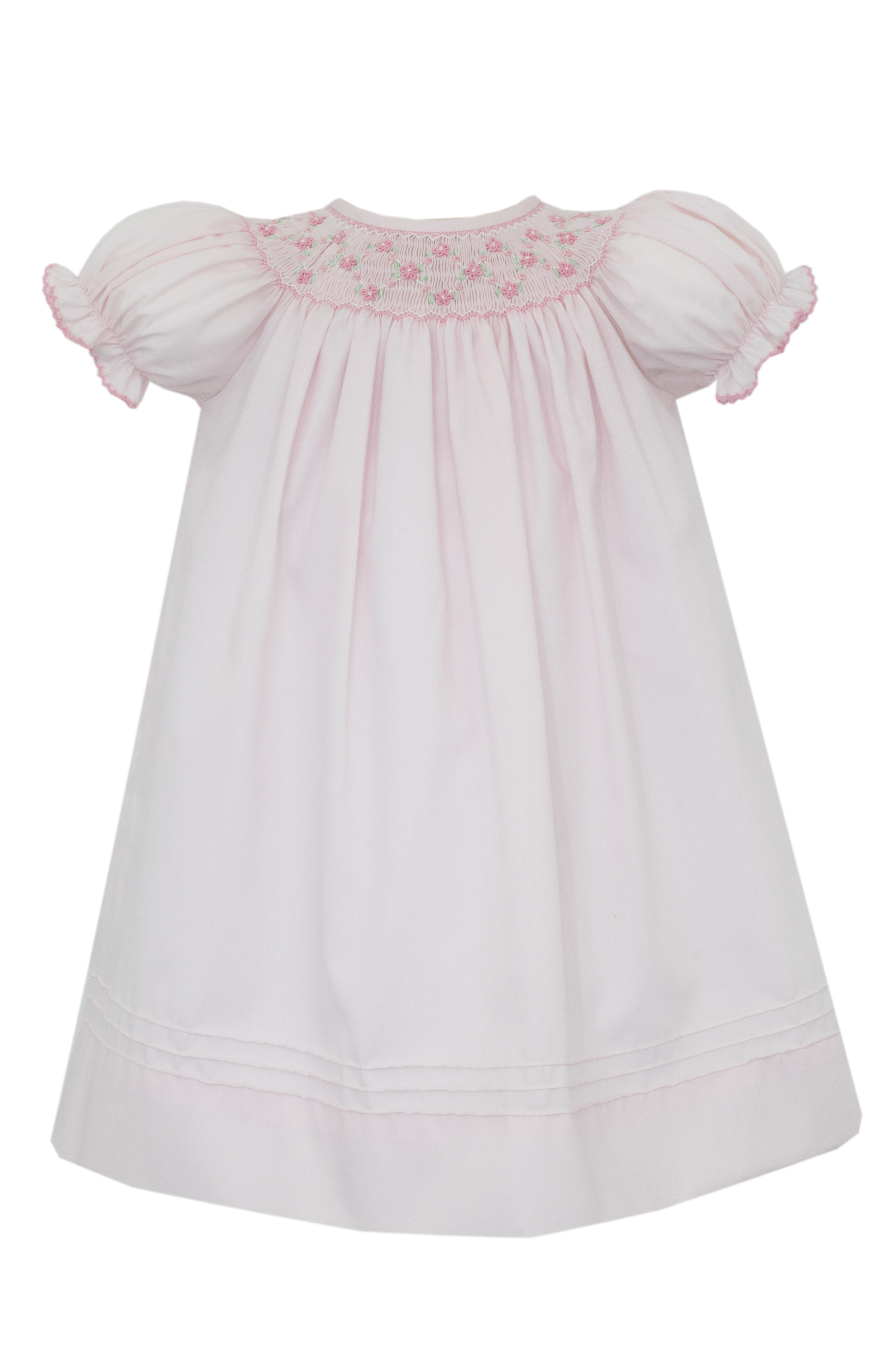 Crafted from premium batiste fabric, this bishop features the classic styling that has made this silhouette a beloved choice for generations. The soft pink hue is universally flattering and pairs beautifully with everything from Mary Janes to sandals, making it versatile enough for both special occasions and Sunday best.