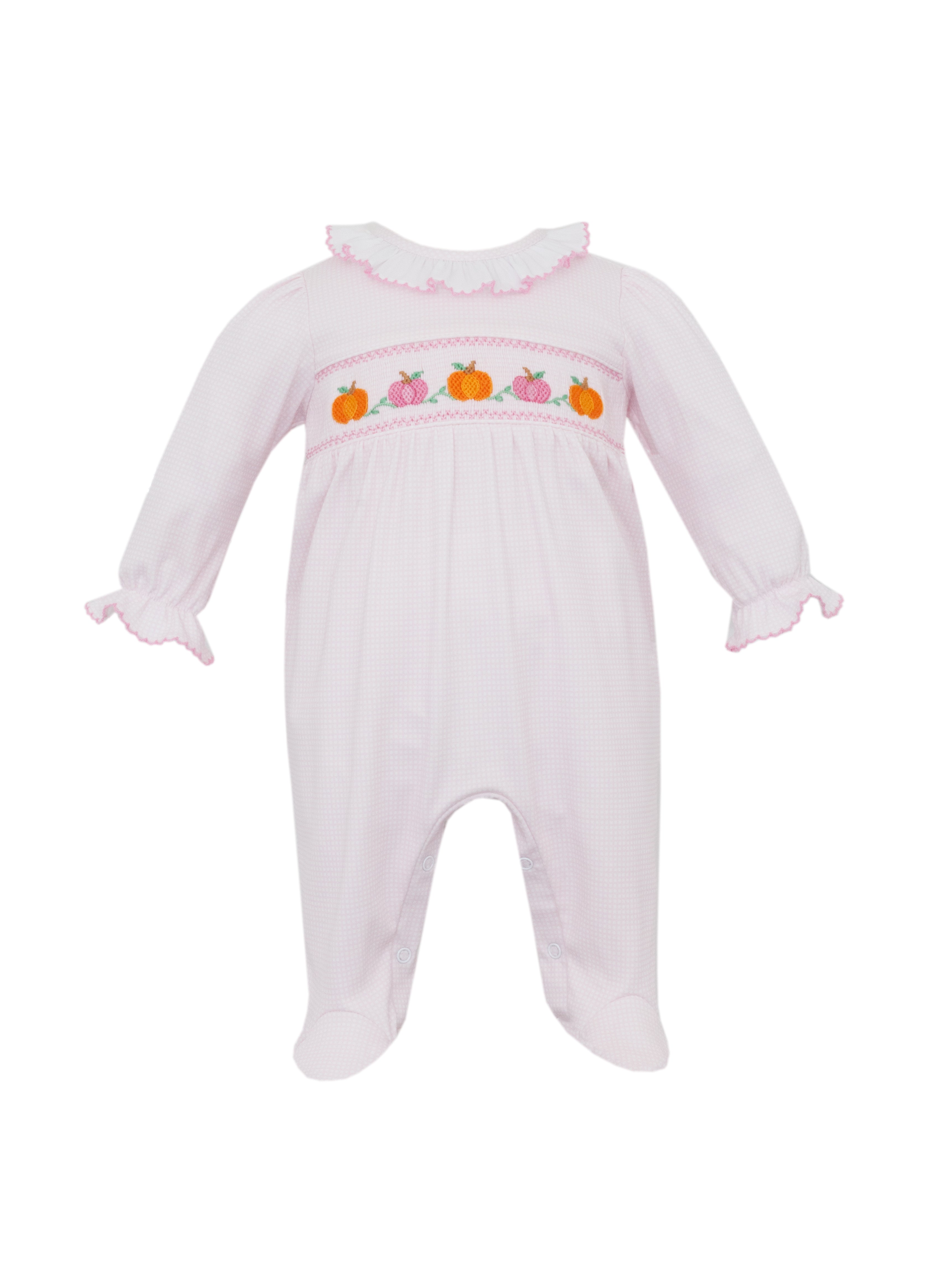 Hand Smocked Colorful Pumpkin Footie, pink or blue