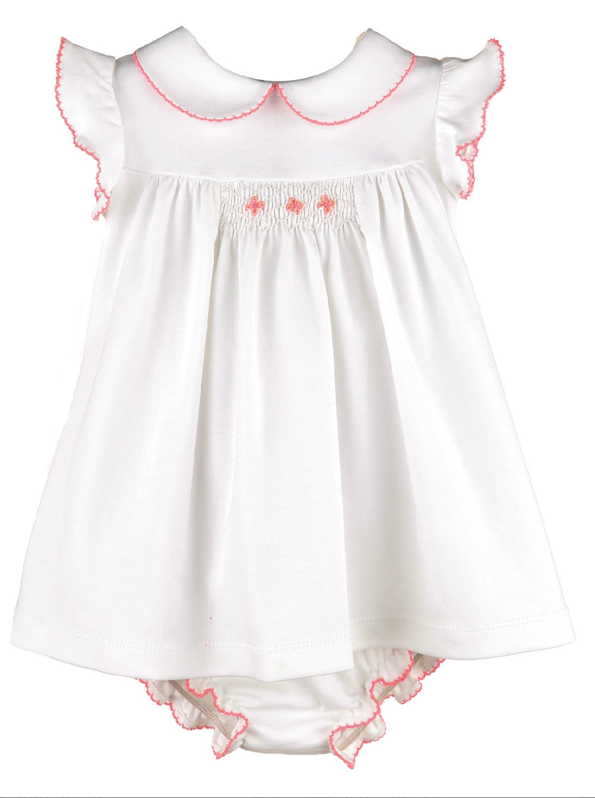 Timeless elegance meets heirloom craftsmanship with this exquisite Pima Picot Edge Collar Dress with Bloomer from Luli & Me. Crafted from luxurious pima cotton and featuring a delicate picot edge collar, this dress set is a treasured piece perfect for special occasions and cherished memories.