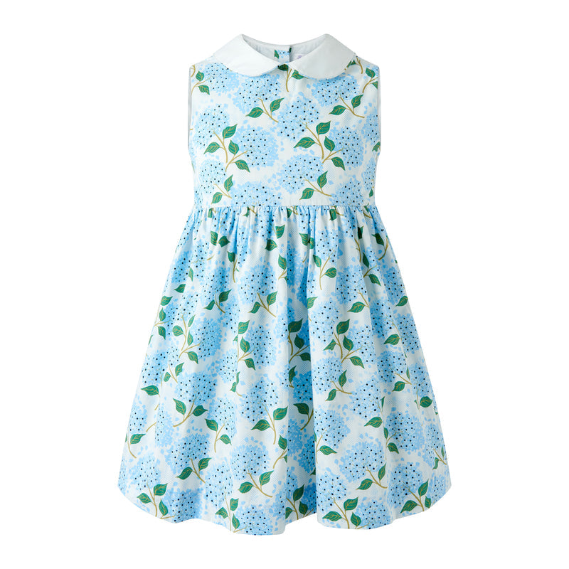 Inspired by the lush beauty of summer gardens, this enchanting dress features a stunning blue hydrangea print that captures the romance and elegance of nature's most beloved blooms. A timeless piece that brings sophistication and charm to every special occasion.