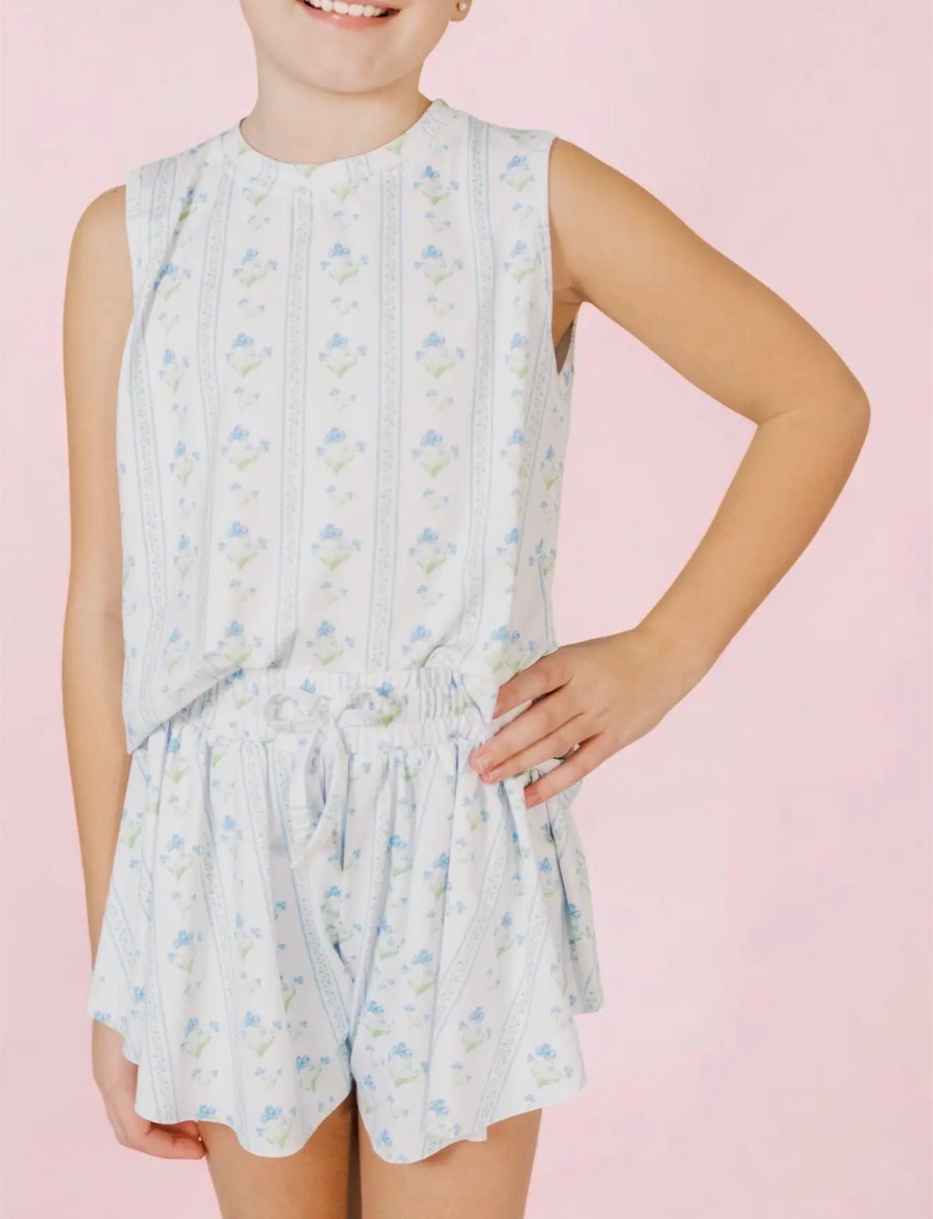 Effortlessly charming and perfectly polished, the Blue Trellis Short Set by Peachy Prep is a warm-weather essential for the little girl with classic style. A crisp trellis print in a fresh blue palette brings a timeless, garden-party feel to everyday dressing — equally at home at a spring brunch or a sunny afternoon playdate.