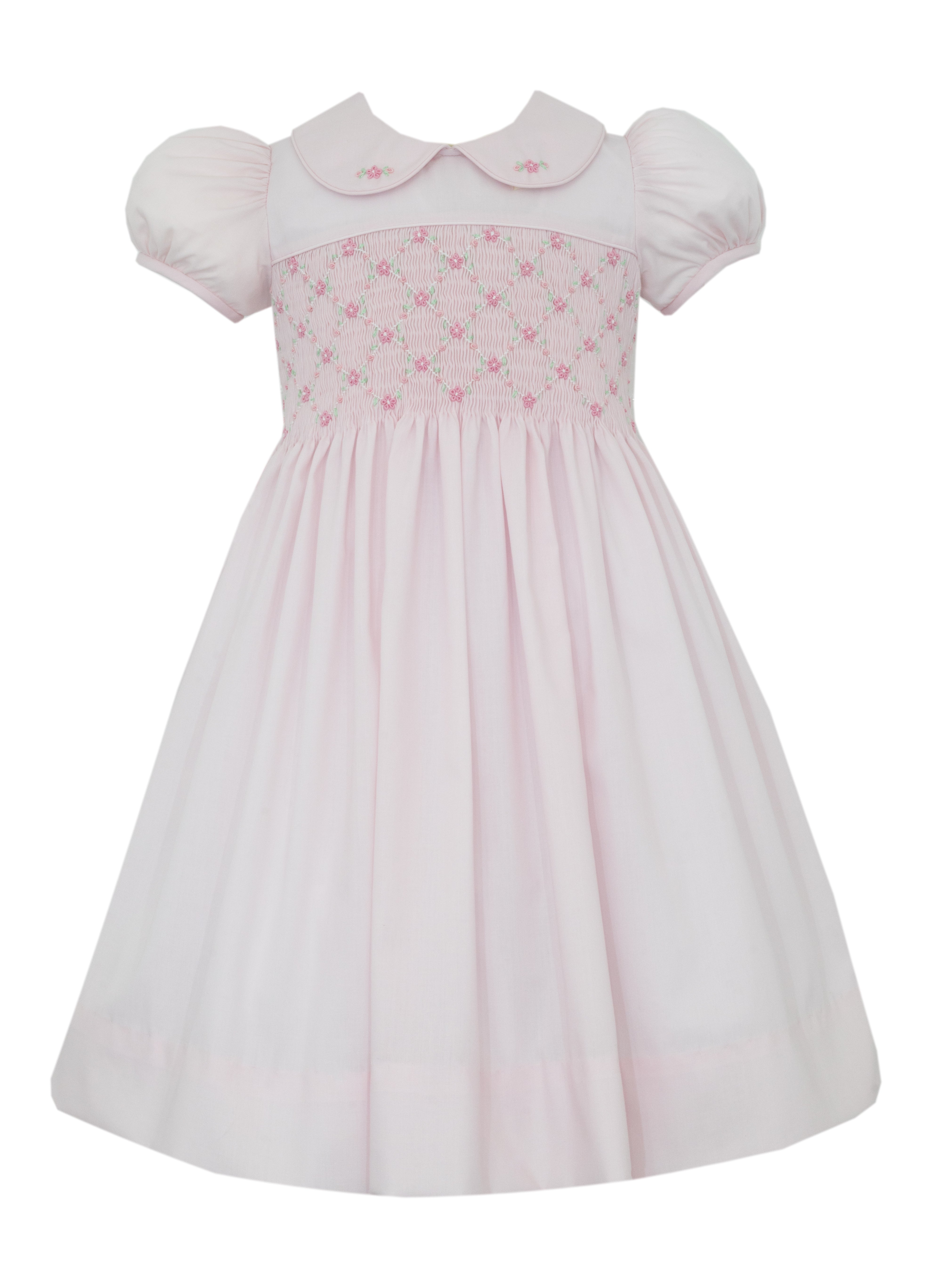 Crafted from the finest pink batiste fabric, this dress offers a soft, lightweight feel that's perfect for spring celebrations and special occasions. The intricate hand-smocked bodice creates beautiful texture and detail, while the classic silhouette ensures comfortable, elegant wear for Easter, portraits, or any memorable event.