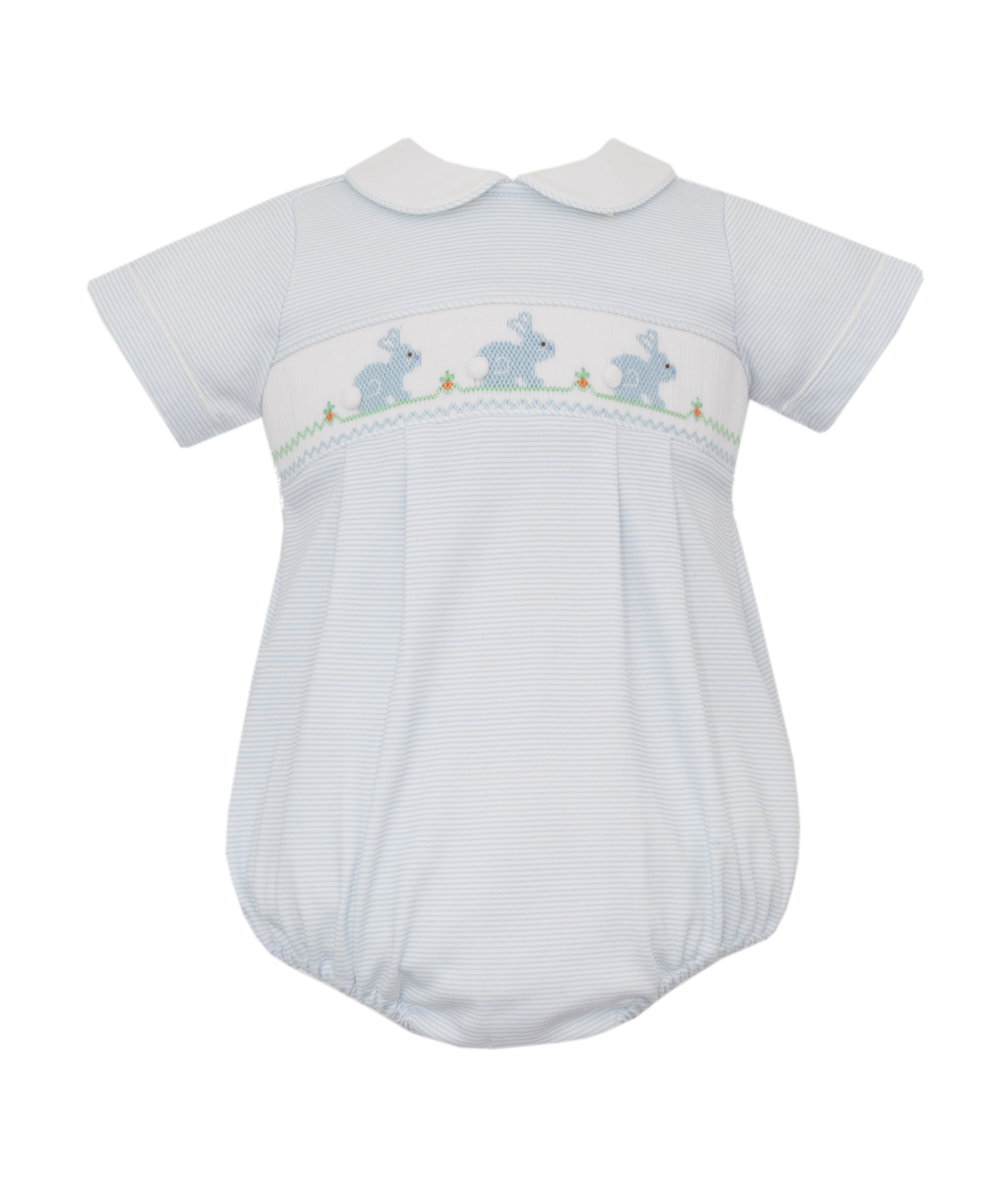 Soft micro stripes meet an adorable bunny detail in this charming bubble, crafted from luxurious Pima cotton for exceptional comfort and quality. The classic bubble silhouette is perfect for playtime and special occasions alike, while the premium Pima cotton ensures this piece stays soft wash after wash.