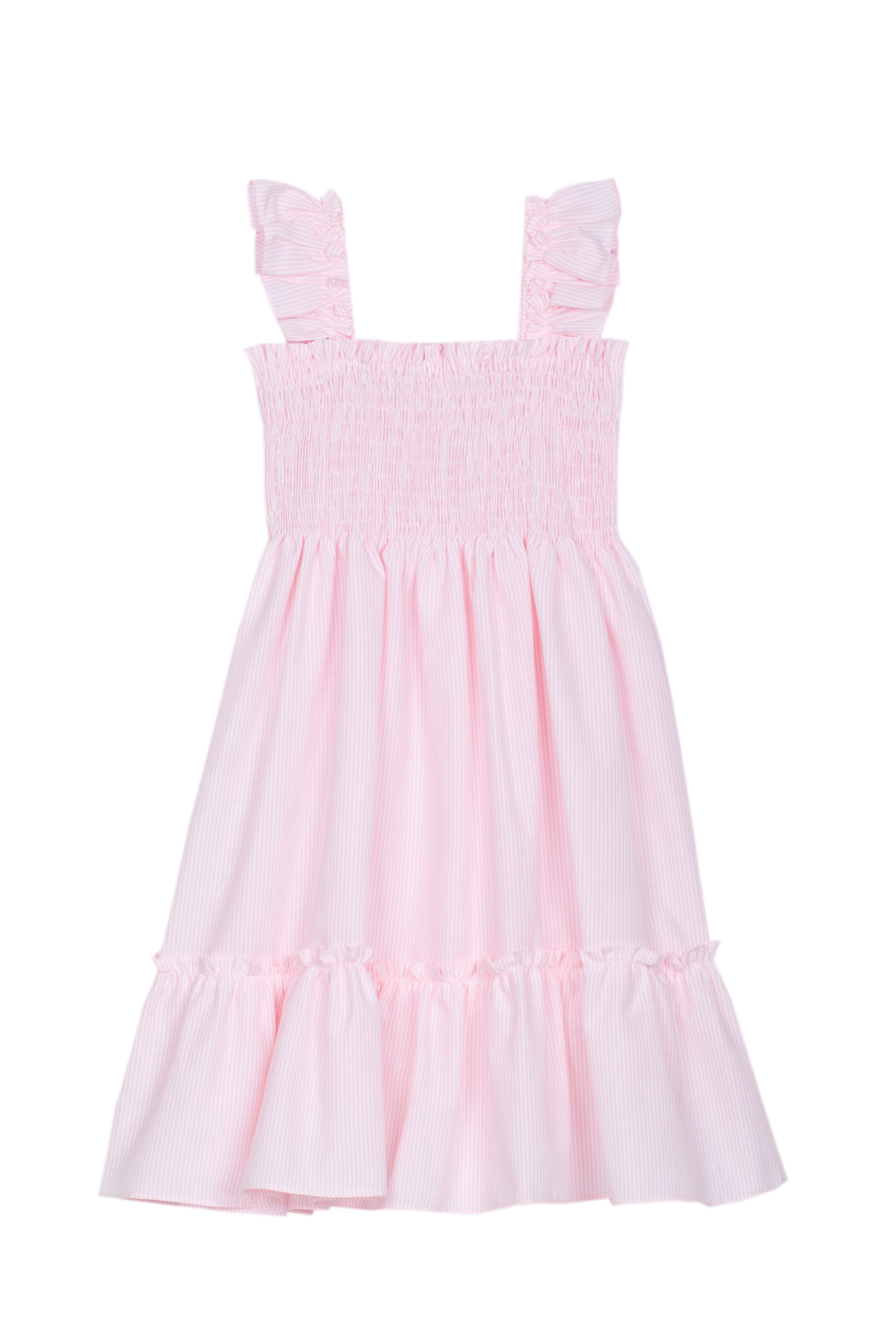 Classic pink stripes bring timeless charm to this beautifully crafted sundress, designed for sun-filled days and cherished memories. Thoughtful ruching creates a flattering silhouette while allowing room to grow, making this piece a wardrobe favorite season after season.