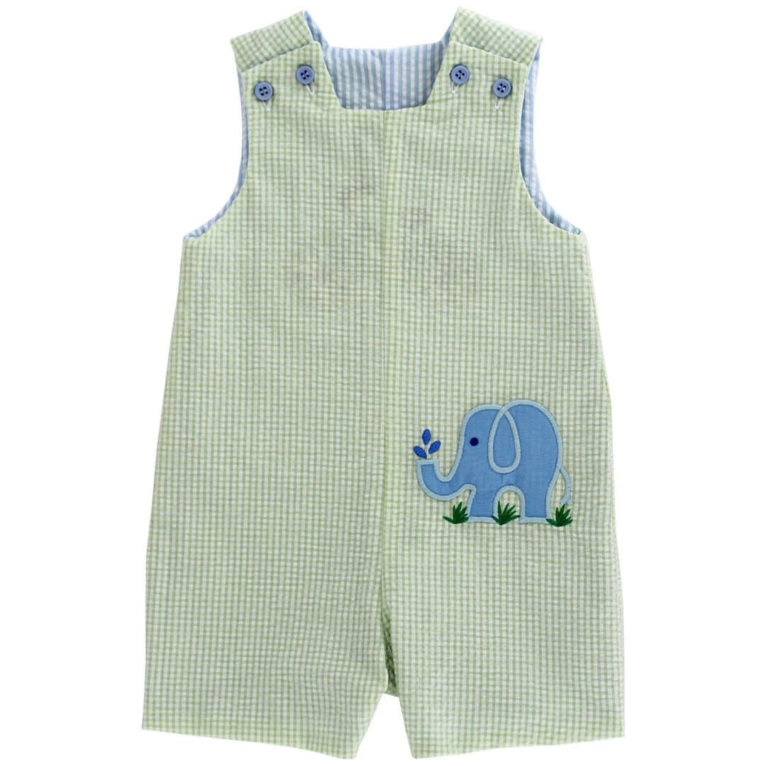 - Side one features a playful elephant motif in classic seersucker