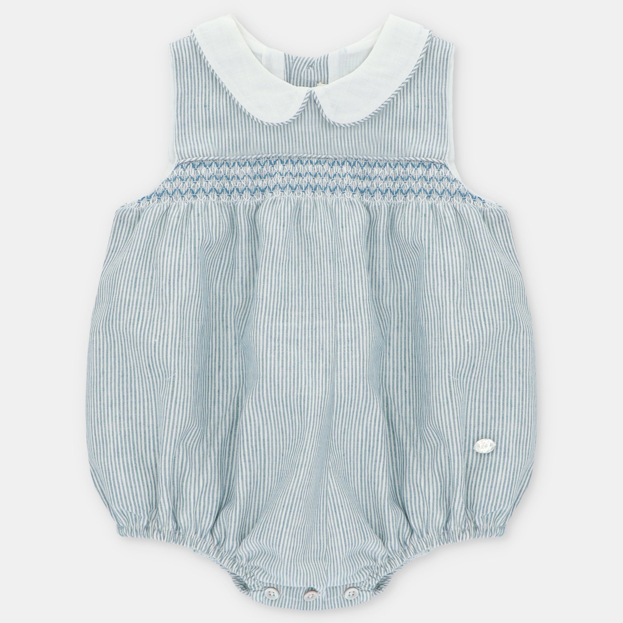 Embrace timeless Southern charm with this exquisite seersucker smocked bubble. Crafted from classic seersucker fabric with its distinctive textured stripes, this piece captures the essence of traditional children's fashion while remaining perfectly suited for modern celebrations. The beautiful hand-smocking detail adds artisanal elegance and heirloom quality to this already special garment.