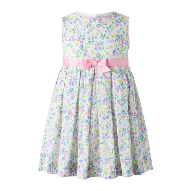 Complete the look with classic Mary Janes and a coordinating hair accessory for an unforgettable springtime ensemble that captures the magic of childhood in bloom.
