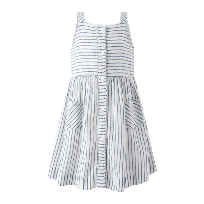 Effortless elegance meets timeless design in this striped linen button front dress from Rachel Riley. Crafted from premium natural linen, this versatile piece features classic stripes and a flattering button-front silhouette that transitions beautifully from casual outings to special occasions.