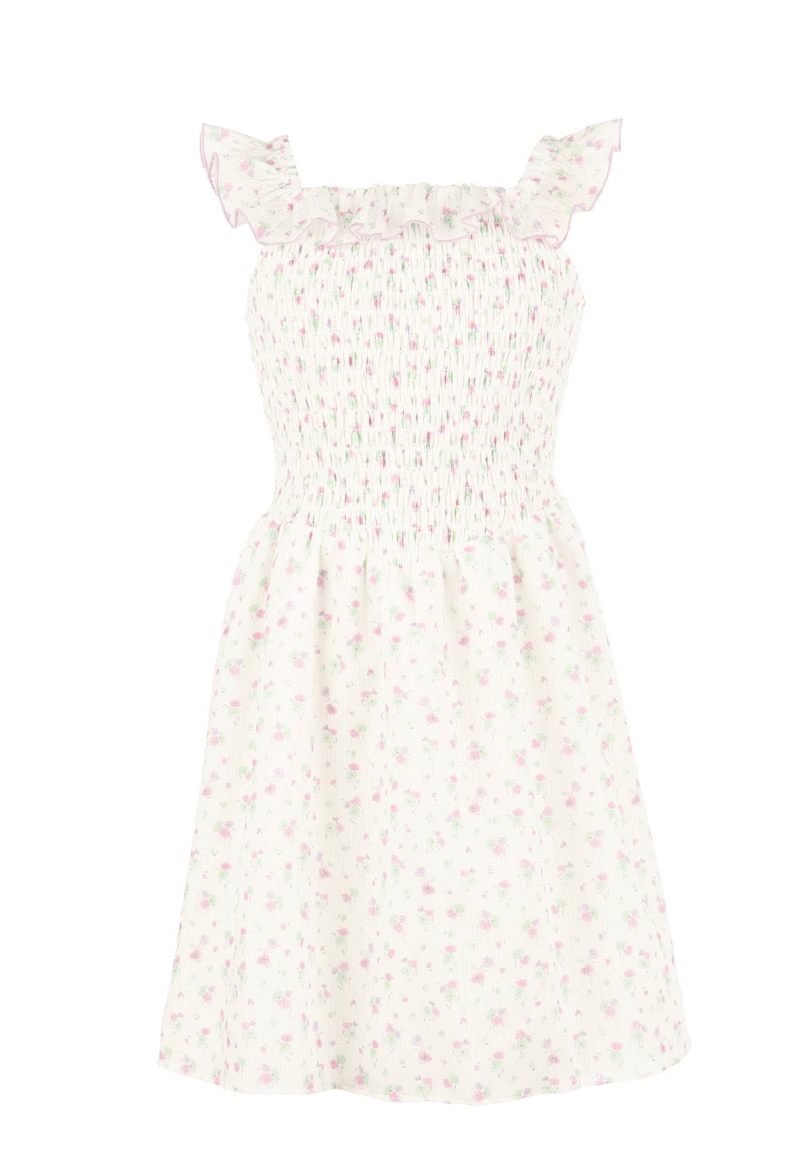 A garden-inspired treasure crafted for sun-filled days and cherished memories. This enchanting dress features delicate micro-floral prints across soft, breathable fabric, with hand-smocked shirring that creates an heirloom silhouette. The elasticized bodice ensures a comfortable, grow-with-me fit, while gentle gathers at the waist create a flattering shape that moves beautifully with every twirl.